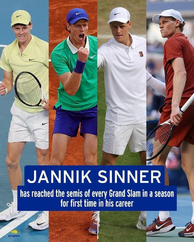 辛纳今年生涯首次大满贯全部晋级四强!已夺两冠一亚!